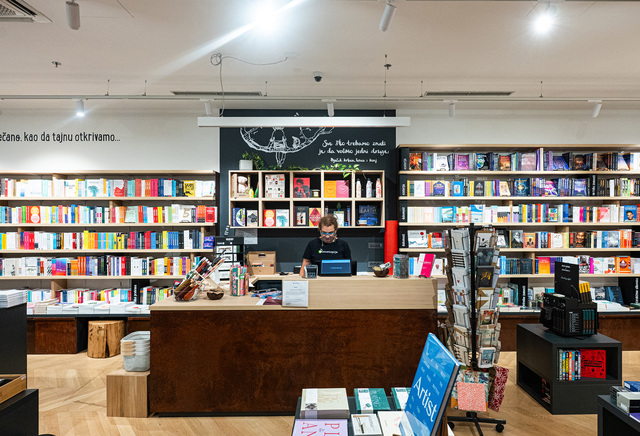 Nova knjižara donosi pažljivo kuriran izbor knjiga svih domaćih i probranih stranih izdavača. Na policama se mogu pronaći suvremena i klasična književnost, poezija, publicistika, popularna psihologija, osobni razvoj i wellbeing, raskošne kuharice te bogat izbor naslova na engleskom jeziku. Bogatstvo ponude ogleda se i u djeci namijenjenom odjelu, s brojnim čarobnim, edukativnim i zabavnim slikovnicama domaćih i stranih autora. Uz to su zajedno s Brigadom osmislili i posebno dražestan kutak, takozvanu dječju spilju, u kojoj najmlađi mogu prolistati slikovnicu, odmoriti se i poigrati.
