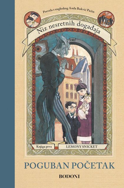 Lemony Snicket pseudonim je američkog pisca i glazbenika Daniela Handlera, koji se proslavio i obogatio dječjim serijalom “Niz nesretnih događaja”. Prvu od ukupno 13 knjiga objavio je 1999. godine, a serijal o nesretnim siročićima Baudelaire završio je 2006. godine. Prvih sedam knjiga bio je objavio Algoritam od 2001. do 2008., uglavnom u prijevodu Dubravke Petrović. Bodoni, sestrinska izdavačka kuća Frakture, sad kreće ispočetka, s novim prijevodom koji potpisuje vrsna prevoditeljica Anda Bukvić Pažin. Djeca obožavaju ovaj crnohumorni, sarkastični i metafikcijski serijal u kojem tajanstveni Lemony Snicket – koji funkcionira i kao autor i kao pripovjedač – pripovijeda nesretnu sudbinu Violet, Klausa i Sunny Baudelaire. Djeca su u “Pogubnom početku” upravo ostala bez roditelja, koji su poginuli u požaru, i usvojio ih je dotad nepoznati rođak grof Olaf koji se zapravo želi domoći njihova bogatstva. Snicket odmah upozorava da je ovo nesretna priča i bolje je čitatelju raditi nešto drugo: tko želi čitati o ogavnom zlotvoru, kobnom požaru, zavjeri, ružnoj odjeći i hladnoj kaši za doručak? Pa… svi.