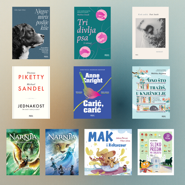 Izdavačka kuća Profil za ovogodišnji je Interliber pripremila 30 novih sjajnih beletrističkih i publicističkih naslova te knjige za djecu od kojih izdvajaju njih deset: od neočekivanog hita francuskog novinara preko višemilijunskog svjetskog bestselera japanske autorice, novog romana dobitnice prestižne nagrade Booker do dosad najintimnijih memoara legendarne Patti Smith koji izlaze istovremeno s izvornikom te novog raskošnog izdanja klasika – "Narnia".