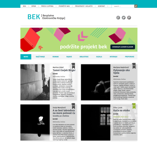 Objavljivanje ovih naslova nastavlja kontinuitet programa u kojem već gotovo dvadeset i pet godina BEK sustavno objavljuje suvremenu hrvatsku poeziju, prateći i afirmirajući kako ključne autorske opuse, tako i nove pjesničke glasove. Tijekom protekle godine zabilježeno je i milijunto čitanje domaćih pjesničkih naslova na platformi Besplatne elektroničke knjige, što potvrđuje postojanje trajnog i aktivnog čitateljskog interesa, kao i važnost njihove besplatne i trajne digitalne dostupnosti.